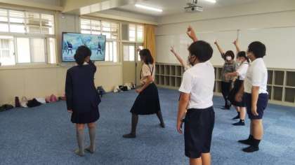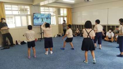 プールの授業を控え、映像をみながらダンスをおどっています。