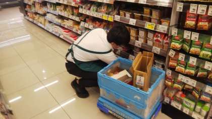 研修中の名札をつけ、エプロン姿もよくにあっていましたよ、。