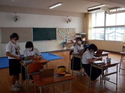 パソコンを開いたり、教科書を見たりして各自で学習しています。