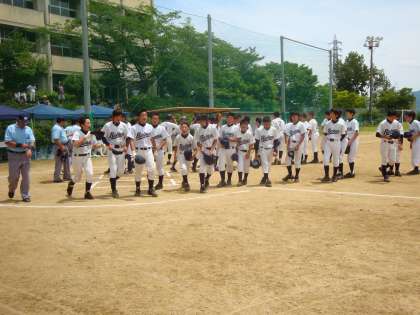 『第55回大阪中学校軟式優勝野球大会』が始まりました。本日、PL学園グラウンドで試合が行われました。写真は、試合開始時の様子です。以下に、大会の様子をアップしていますのでご覧ください。