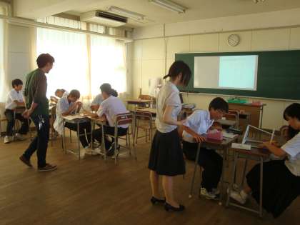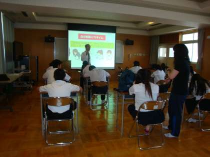 写真左は「自分は何になる?(キャリア)」(金蘭会高校)、右は「工作科学」(西成高校)の講座の様子です。