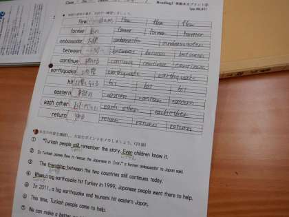 テストを控え、「単語本文プリント」をしています。