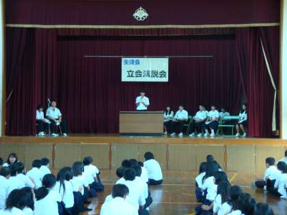 生徒会役員立会演説会(自治活動のできる学校に!)