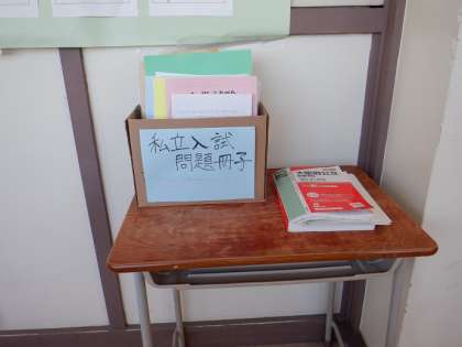 C棟3階の廊下に、過去の入試問題をおいています。