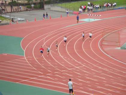 写真左は『200m(1年女子)』、右は『走り幅跳び(3年女子)』の様子です。1年生は、初めての公式大会だったようです。