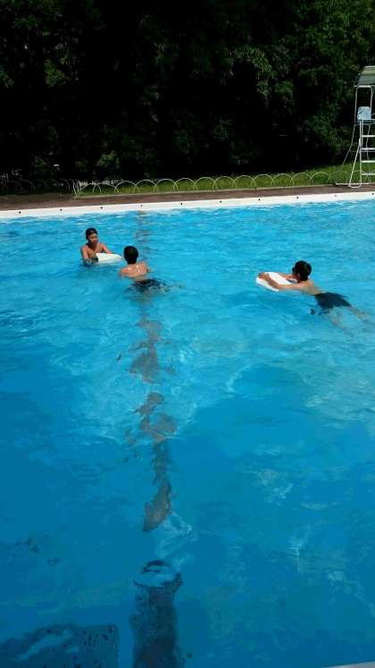 楽器演奏活動の後は、お楽しみのプールの活動です。貸し切り状態で、とても気持ち良さそうです。プール活動が終われば、昼食を食べて退所式です。