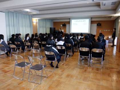 本日2・3限に助産師さんにお越しいただき、多目的室で2年生「性教育」講話を実施しました。
