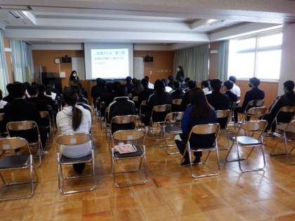 本日5限目に3年生を対象に、学校薬剤師の先生を講師にお招きして「薬物乱用防止教室」を行いました。
