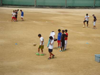 8月9日(日)に行われましたブロック予選会最終戦で、惜しくも天下茶屋中学校に敗れ、順位決定トーナメント戦に出場することができず、この試合をもって3年生は引退することになりました。「本当にご苦労さまでした!」今週にからは、新チームで練習に励んでいます。今後も応援よろしくお願いします。写真は、本日の練習の様子です。「あっつ〜」