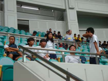 写真は、応援の様子です。同じTシャツを着た仲間が表彰されました。「おめでとう!」