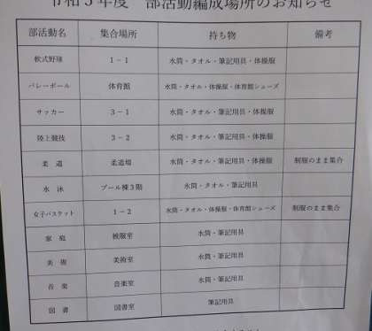 昨日、放課後に部活動編成を行いました。