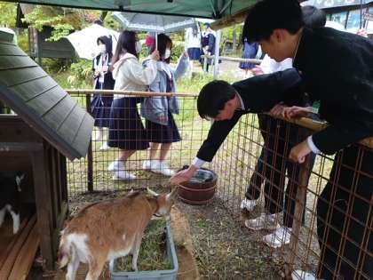 飛騨の里でヤギと交流中です。
