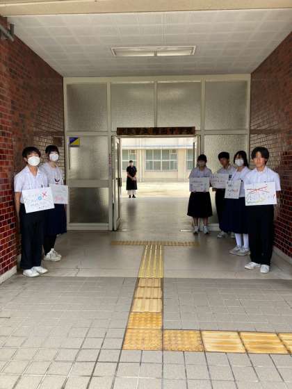 毎日、元気に挨拶しながら訴えています。皆様、ご協力よろしくお願いします。