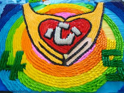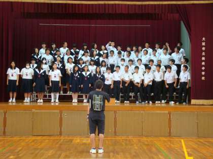 10月9日に行われる『文化祭』の「舞台発表」「展示発表」の一部を紹介 します。写真左は、2年生の展示作品です。6,000近い数の「折り鶴」で作られていますが、まだ未完成です。ぜひ、会場でご覧ください。写真右は、1年生の舞台発表の「合唱」の練習風景です。すばらしい歌声を聴かせてくれると思います。