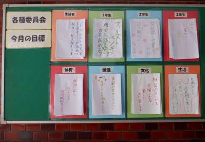 生徒会役員および各委員と各学年の代表が集まり、今月の目標を確認しました。