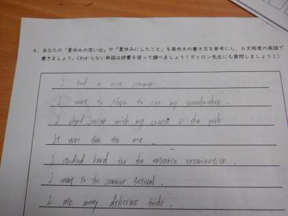 「夏休みの思い出」や「夏休みにしたこと」を英作文にしています。