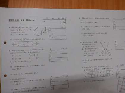 3年2組は数学の授業です。グループになってプリントを教えあいをしています。