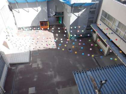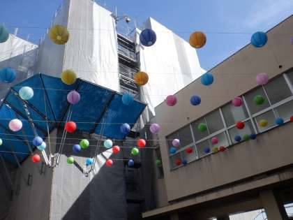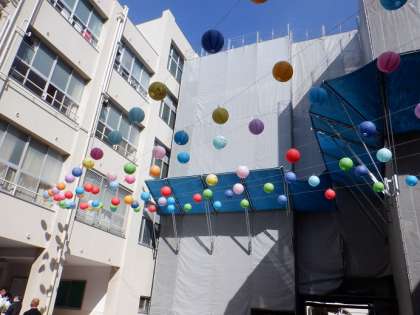 2年生が願いや目標を紙風船にしたためて、飾りました。