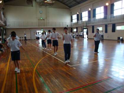 本日、1時間目の体育科の授業研究を行いました。10月25日の文化祭の発表に向けて子どもたちが一生懸命にダンスに打ち込んでいる様子を見て、生徒の自主性やリーダーが育っているように感じました。ビデオを見ての研究やグループ練習など真剣そのものです。当日の発表がたいへん楽しみです。3年生のすばらしさを下級生に見せてくれ!
