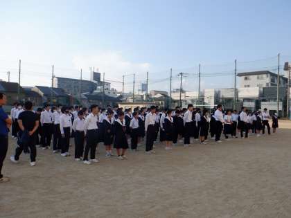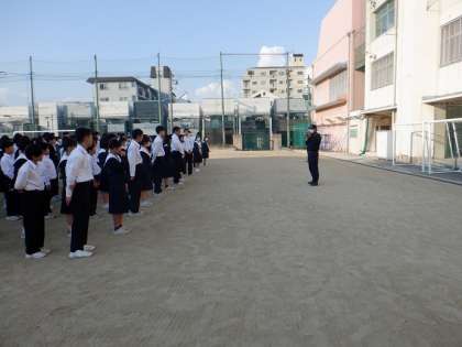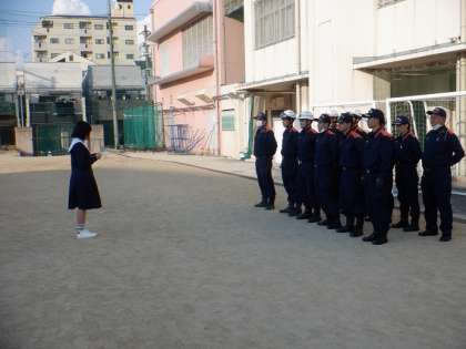 生徒会長からのお礼のことばがあり、その後消防隊員の方のお話がありました。