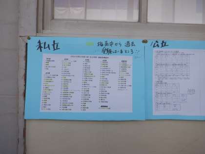 2年生の廊下に、進路関係(高校一覧)のプリントを掲示しています。