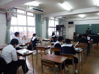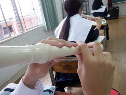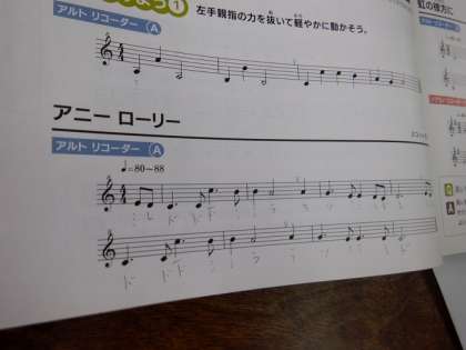 「アニーローリー」の曲をアルトリコーダーで吹いています。