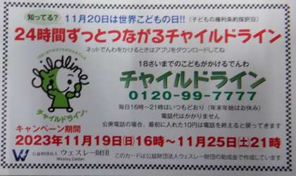 「24時間ずっとつながるチャイルドライン」を次のとおり実施します。