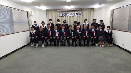 また、表彰式のあとは、表彰された西成区内の中学生全員と記念撮影です。
