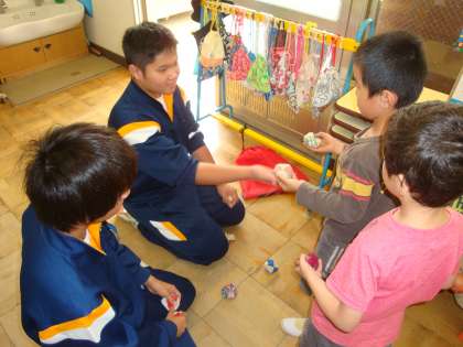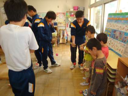 写真左は「けん玉」、右は「お手玉」あそびの様子です!