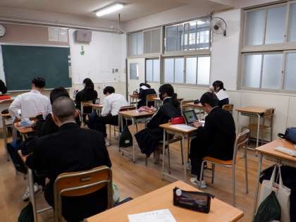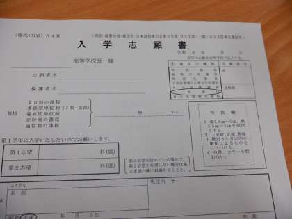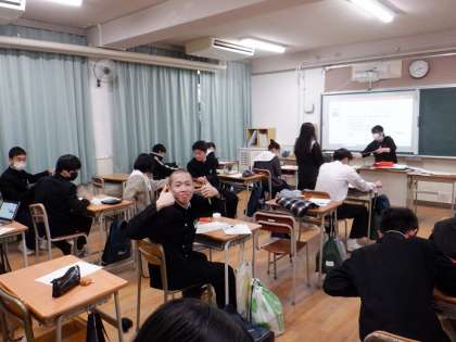 本日6時間目に、卒業文集の清書と公立高校受験のために自己申告書や願書の下書きをしています。まずは3年1組の様子です。