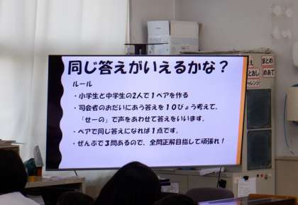 つぎは、各班にわかれ「同じ答えがいえるかな」ゲームです。