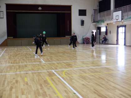 今日は1・2年生が運動場や体育館でボール遊びをしています。