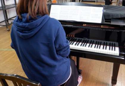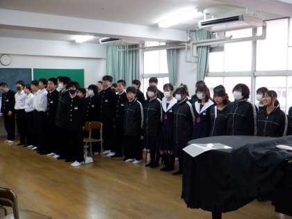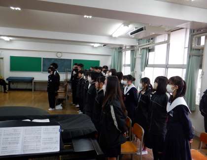 1年生は、全員で卒業式の歌の練習です。