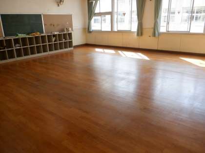 みんなで教室をきれいにワックスがけをしてくれました。
