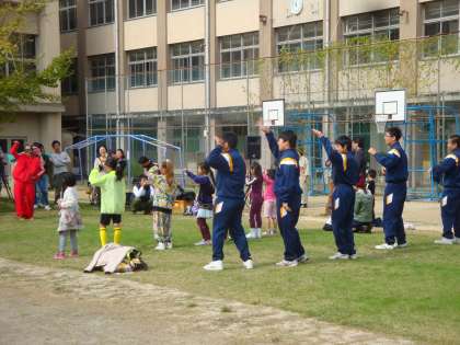 ハロウィン衣装の子どもたちも、柔道部員もいっしょに楽しくおどりました!