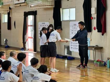 球技大会の表彰式の様子です。