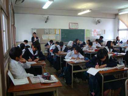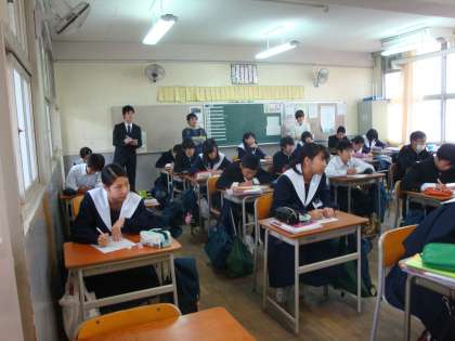 本日、5限目に小中連携(校種間連携)の一環として、校区の松之宮小学校から教員2名が『授業参観』に来られました。参観終了後は、校長先生と意見交換をされたようです。写真左は2年生の『国語』、右は1年生の『社会』を参観された時の様子です。小学校との違いをずいぶん感じられたようでした。