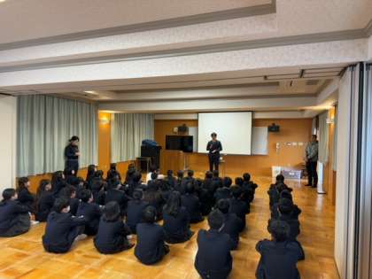 1年生担当の先生の自己紹介と、明日からいよいよ始まる「授業」の受け方の講座を行いました。