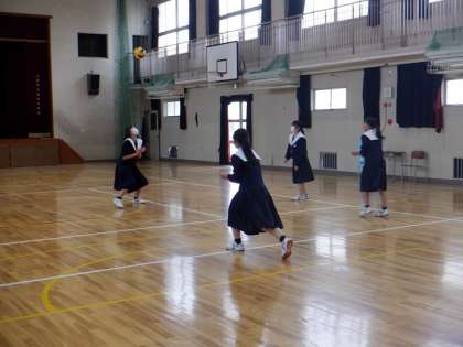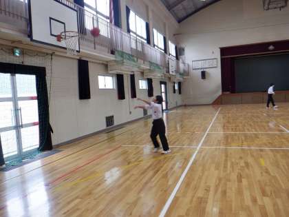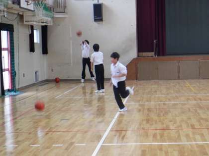 昼休みには、運動場以外にも体育館でボール遊びをしています。