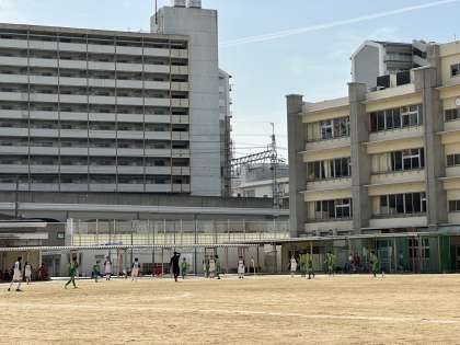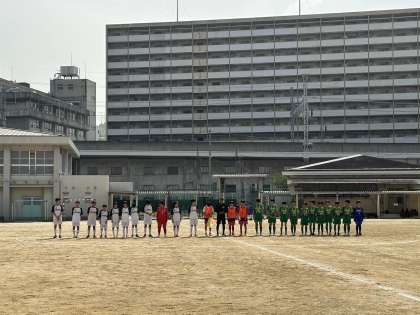 サッカー部は今宮中学校と難波中学校の3校合同チームとして活動しています。明日は2回戦です。頑張りましょう!