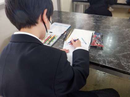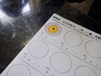 授業の始まりのときに「心の色」を色鉛筆を使って表しています。