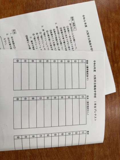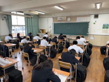 1年生は、中間テストが中学校に入って初めてのテストになります。そのテストの練習として、簡単なプレテストを行いました。全員が集中して取り組んでいました。