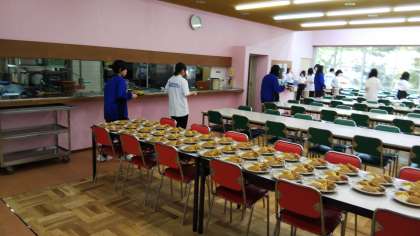 食事係が食事の準備をしています。