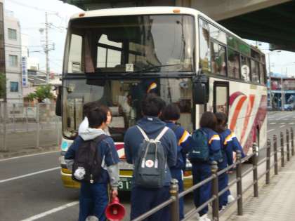 今日は、2年生の『秋の遠足』です。2年生の生徒全員参加で無事出発です。みんな楽しみにしていたようで元気です。