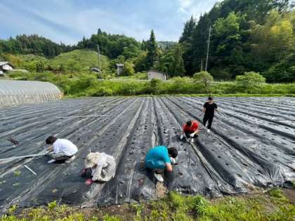 畑の手入れで、雑草を抜いています。 とうもろこしを植えるようです。