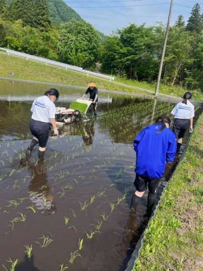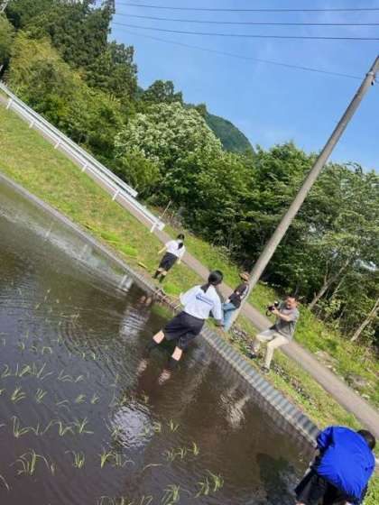 田植え体験をしています。