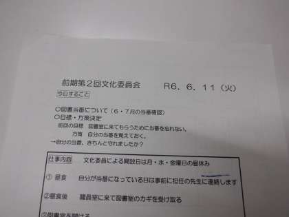 文化委員会の後、学級文庫に読む本を選定しました。