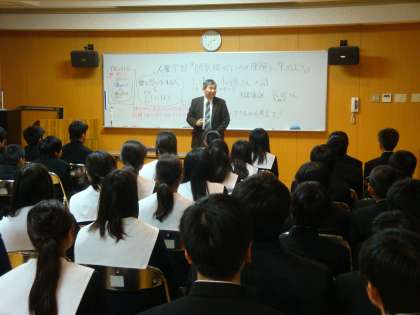 本日午後からは、各学年で様々な取組がありました。3年生は『進路用・卒業アルバム用写真撮影』、2年生は『球技大会』(写真左)、1年生は「聴覚障がいへの理解を深めよう」というテーマで、講師に上津原和徳さんをお招きして『人権学習』に取組ました(写真右)。教職員も昼休みに『卒業アルバム用写真撮影』があるなど、たいへん忙しい一日でした。