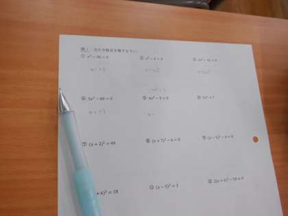 「二次方程式」を教えあいながら解いています。