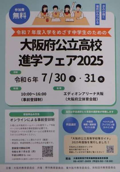 詳細は大阪府公立高校進学フェア「特設ページ」(https://www.pref.osaka.lg.jp/o180030/koto_kaikaku/kokomiryoku/shingakufea_2025/index.html)まで。